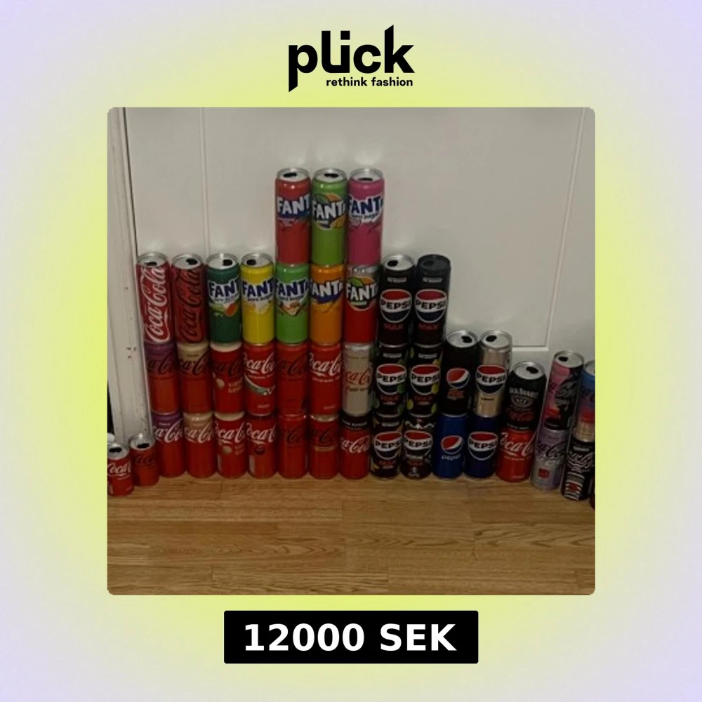 Stor samling tomma burkar och flaskor från populära läskmärken som Coca-Cola, Pepsi, Fanta och fler. Perfekt för samlare eller dekoration. Blandade storlekar och varianter, vissa med unika smaker. Skick varierar, vissa burkar har mindre bucklor, men överlag gott skick.
