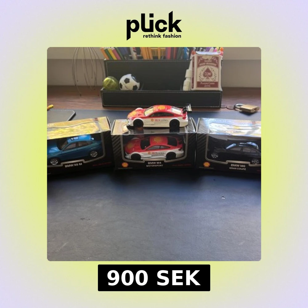Snygga samlarbilar i miniatyr: BMW X6 M (blå), BMW M4 Motorsport (Shell Helix Ultra design), och BMW M6 Gran Coupé (svart). Alla 3 i originalförpackning, officiellt licensierade och med pull back action. Perfekt skick, inga synliga defekter. Det är en som saknar förpackning och den kostar 200 kr annars 250 kr/ styck som de i förpackning. Det som är bra med dessa bilar är att det har en pull back funktion som gör det extremt roligt att leka med.