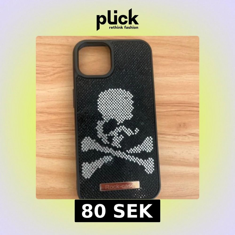 Säljer ett svart mobilskal dekorerat med glittrande stenar.