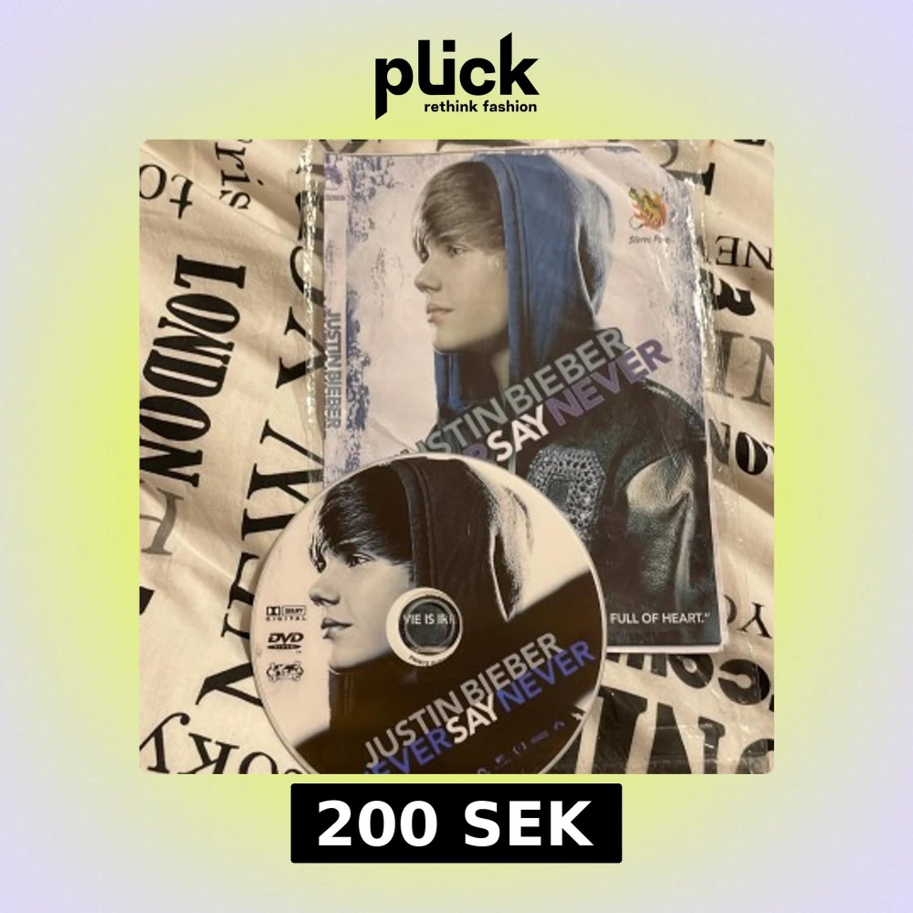 Säljer en DVD av filmen 'Justin Bieber: Never Say Never'.