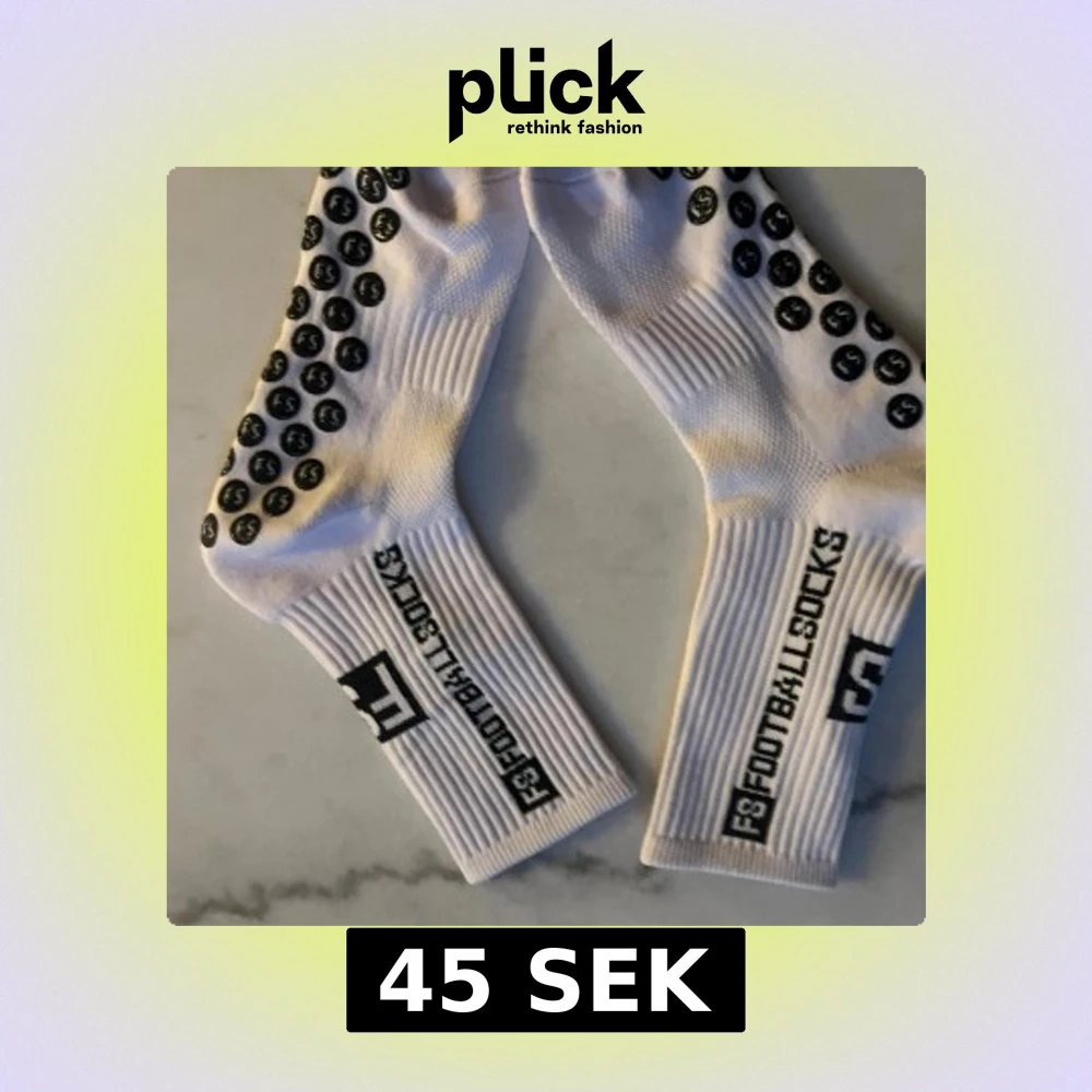 Säljer ett par vita F3 Footballsocks med svarta grepp på undersidan för extra fäste. Strumporna har ribbade skaft och svart logga längs sidan. Perfekta för fotbollsträning eller match. Materialet är mjukt och andas bra.