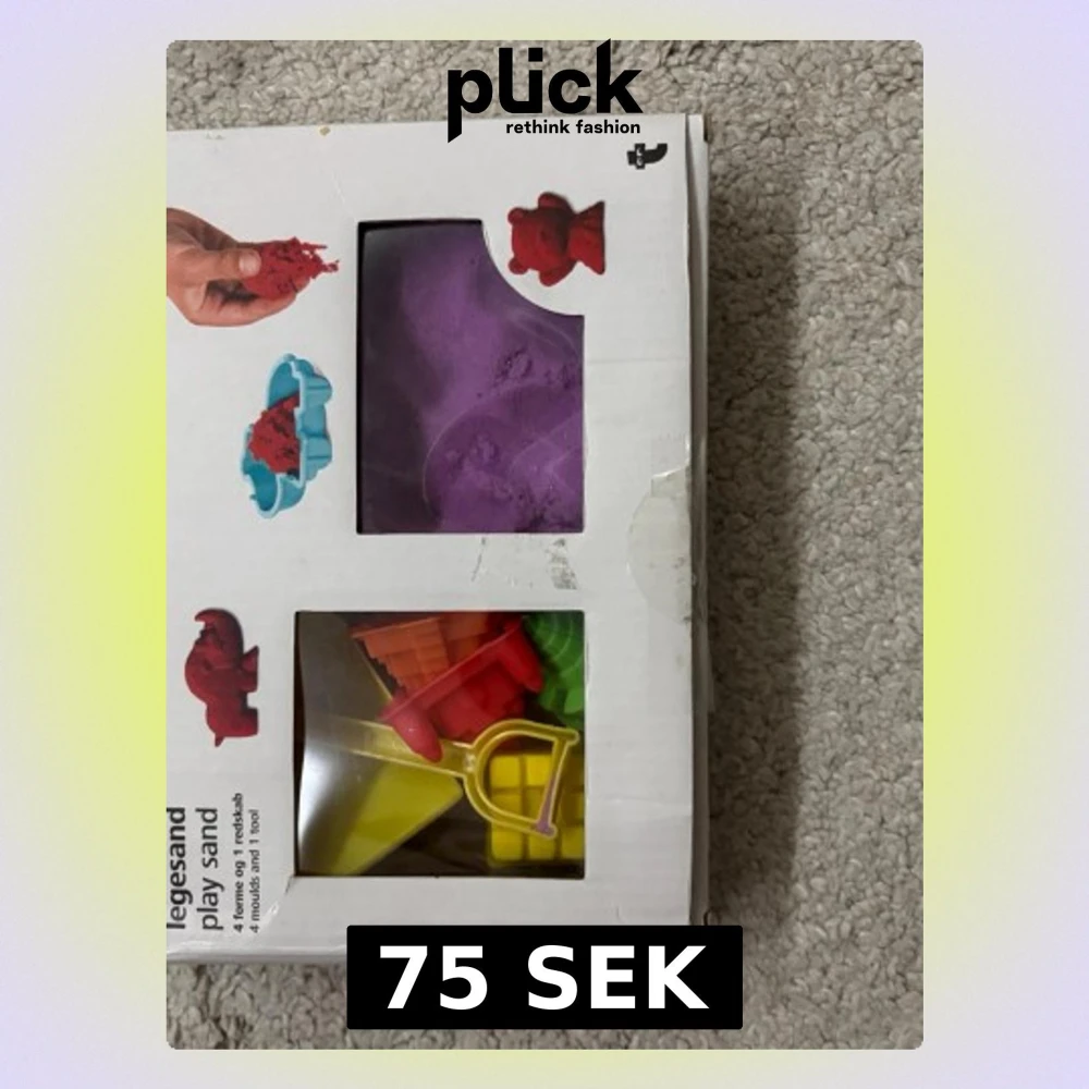 En förpackning med lek- och formsand samt tillhörande formar och verktyg. Skicka för fler bilder.