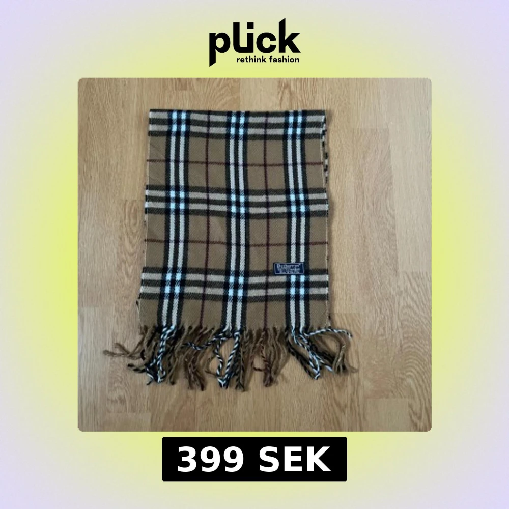 Rutig ullhalsduk från Burberry - Klassisk rutig halsduk från Burberrys i 100% lammull. Färgkombinationen är svart, grå, vit och röd med fransar i ändarna. Perfekt accessoar för att lyfta din outfit med en tidlös brittisk känsla.