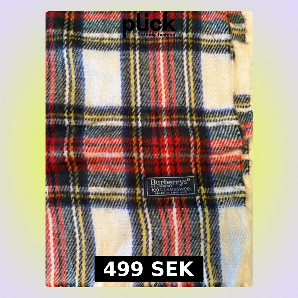 Snygg rutig halsduk från Burberrys i 100% lammull, tillverkad i England. Färgerna är vit, röd, blå, gul och svart med klassiskt rutmönster och fransar i ändarna. Perfekt för att ge din outfit en cool brittisk touch.