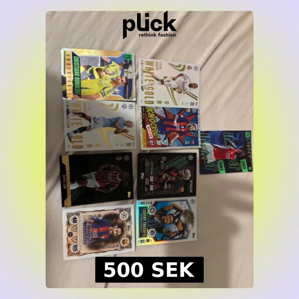 Samling av coola Champions League fotbollskort med stjärnor som Cristiano Ronaldo, Neymar Jr, och fler. Perfekt för dig som älskar fotboll, samlar på kort eller vill byta med vänner. Flera specialkort och glänsande motiv – gör din samling unik! Säljes även separat pris diskuteras