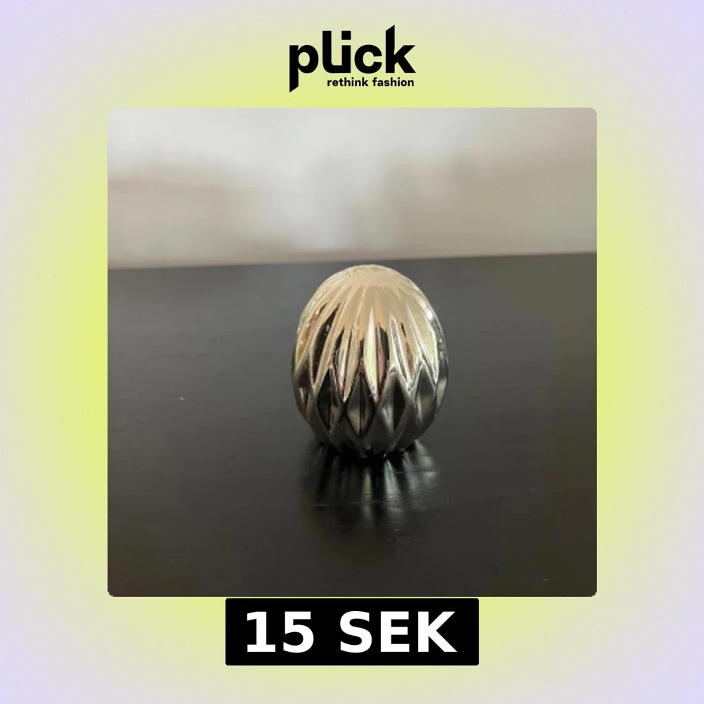 Äggformad silvrig dekoration. Höjd: 7cm.