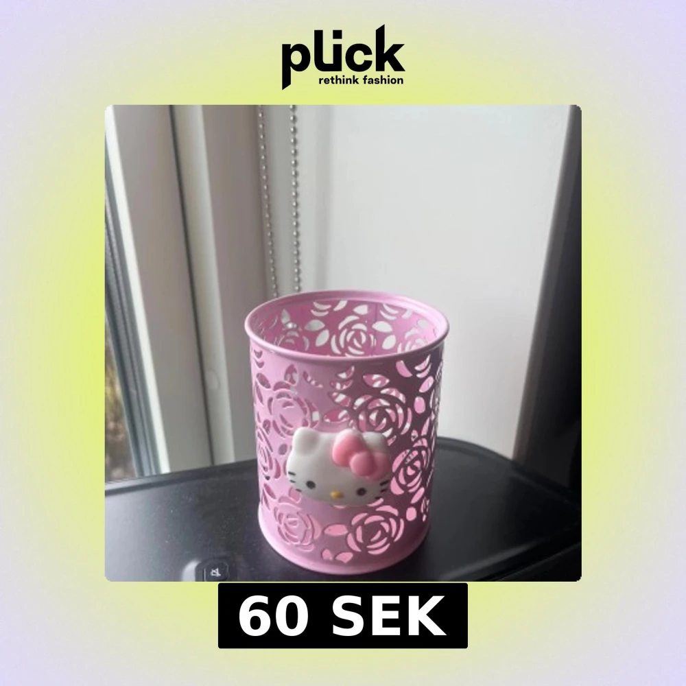 Söt rosa sminkborsthållare med utskurna rosdetaljer och en Hello Kitty-dekoration. 💕Pris går att diskutera 💕