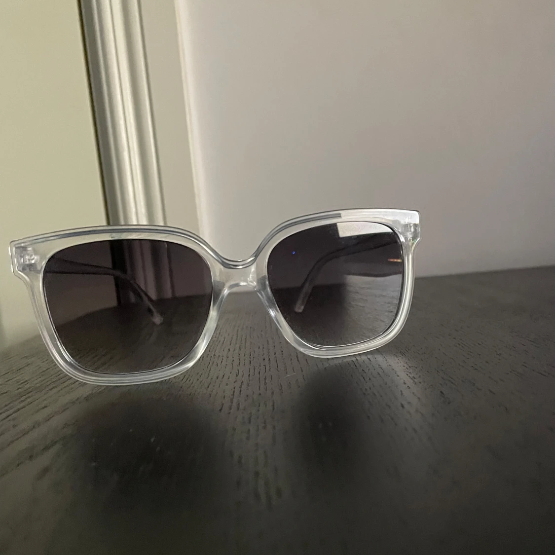 Snygga solglasögon med transparent båge och mörka linser. Perfekta för en stilren look. Passar både till stranden och stan.