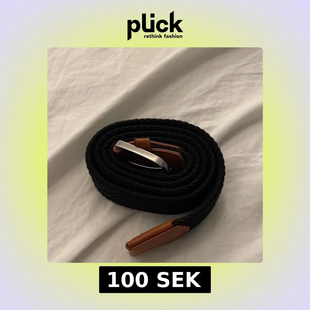Stilrent svart flätat bälte med bruna läderdetaljer och silverfärgat spänne. Bältet har en twistad design som ger en cool och modern känsla. Perfekt för att lyfta din outfit med en snygg accessoar.