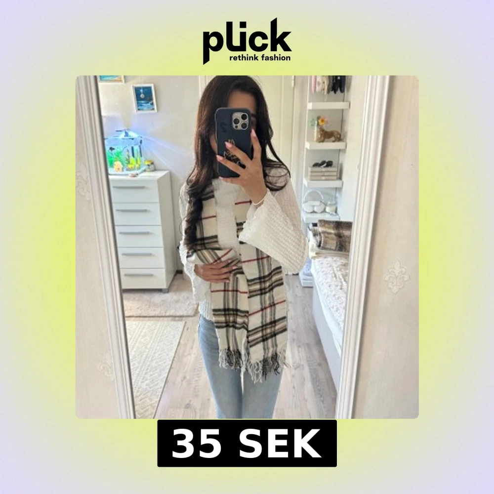 Snygg rutig halsduk med klassiskt mönster i beige, svart, vitt och röda detaljer. Mjuk och varm, perfekt att slänga över axlarna när det är kyligt. Fransar i ändarna ger en chill vibe. Passar till både jacka och tröja för en stilren look.