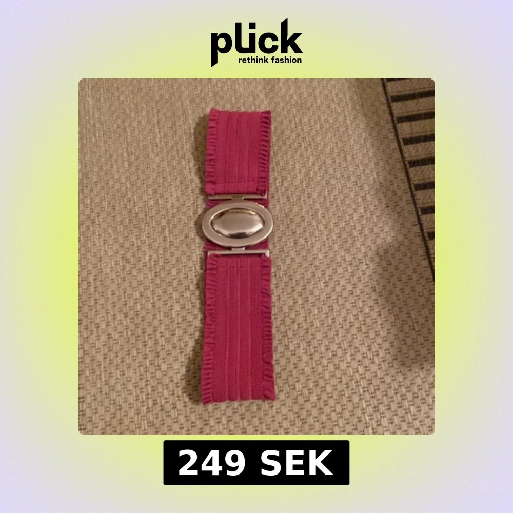 Säljer ett brett rosa bälte med dekorativa kanter och ett ovalt, silverfärgat spänne. Bältet har en elastisk känsla och passar perfekt för att ge outfiten en färgklick. Snygg detalj till klänning eller tunika.