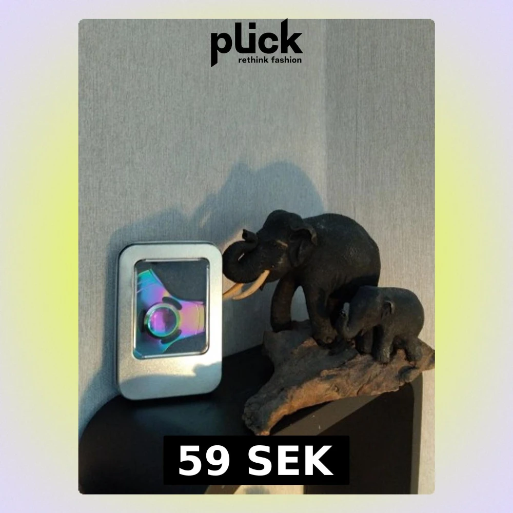 En metallisk fidget spinner i regnbågsfärger med tillhörande metall burk. Snyggt att ha på hyllan och riktigt nice mellan fingrarna. Super satisfying då den är rätt så tyst men man känner hur den snurrar (svårt att förklara med ord)