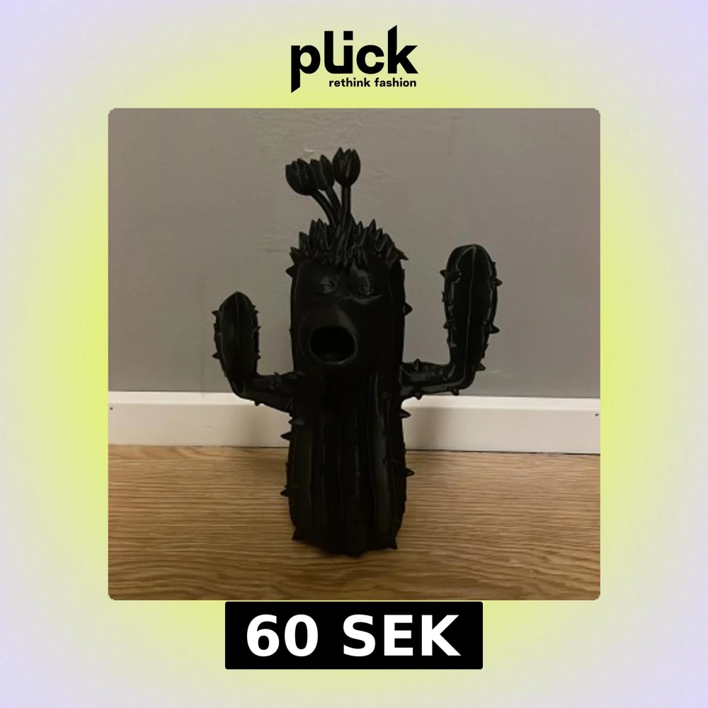 Det är en rolig svart kaktus som man kan ha som prydnad.