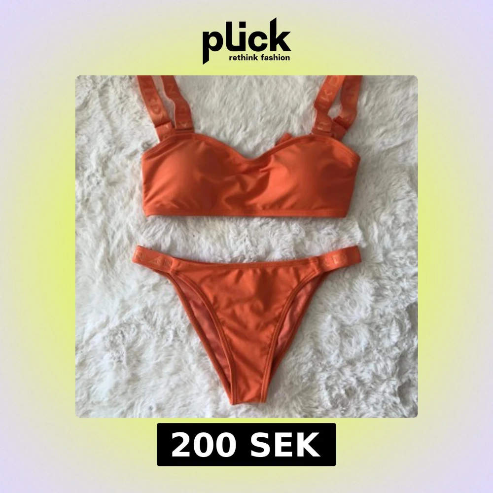 Snygg orange bikini från Frank Dandy med breda axelband som går att justera. Aldrig använd då toppen va för liten endast testad. Båda delarna är S men toppen är som XS