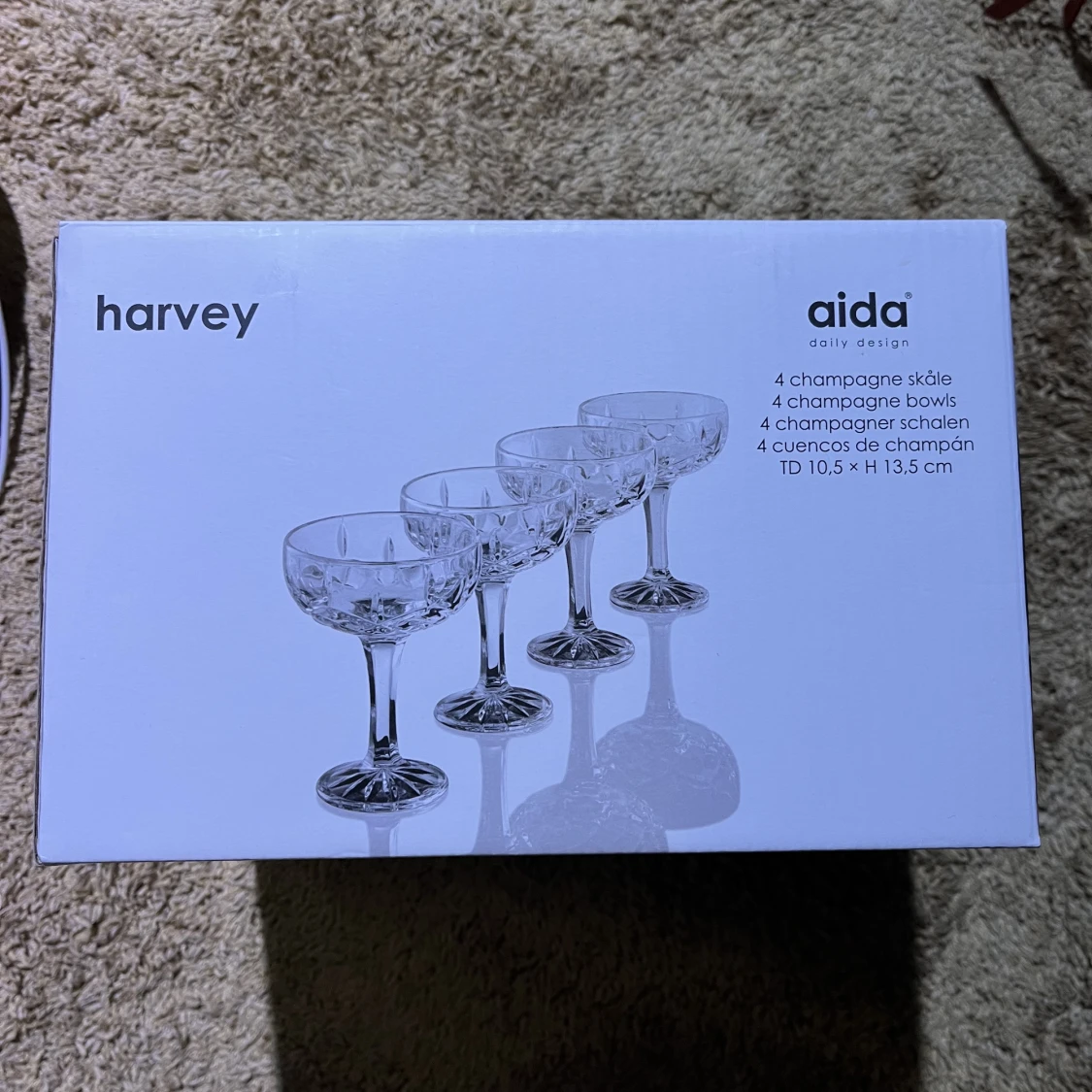 4 st rejäla champagneglas från Aida daily design. Helt oanvända, endast öppnat kartongen.