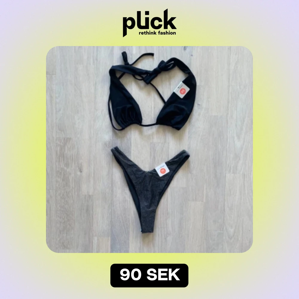 Svart bikini, överdel och underdel (glittrig underdel) i strl XS. Helt nya.