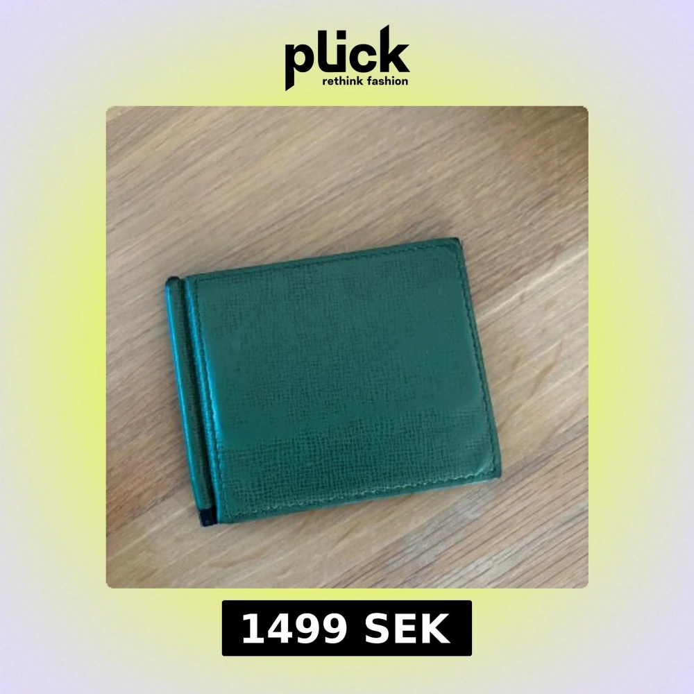 Snygg grön plånbok i skinn med stilrent mönster och flera kortfack på insidan. Plånboken har en metallklämma för sedlar och en smidig, kompakt design som passar perfekt i fickan. Perfekt för dig som vill ha koll på kort och cash med stil. Nypris: 3000kr