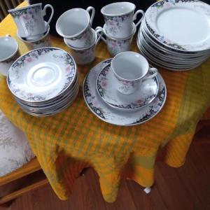 Set, kaffekoppar ,assietter ,små kaffefat.