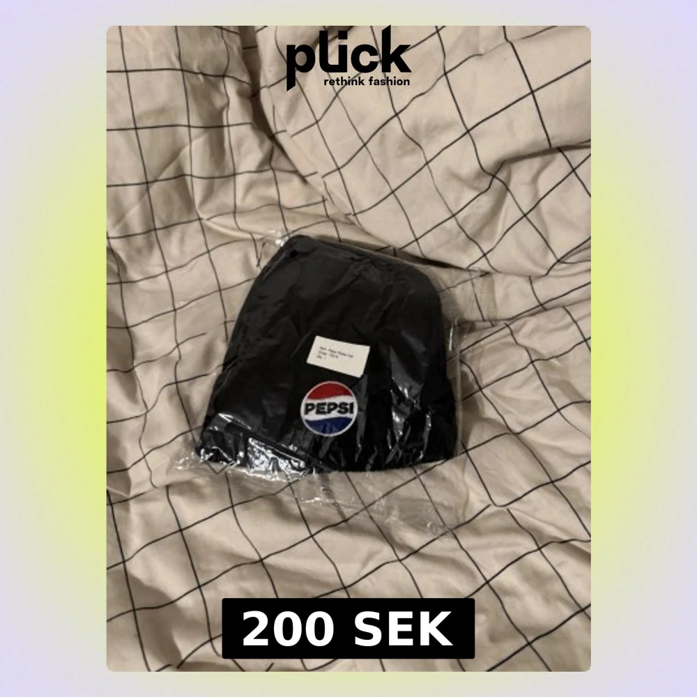 Svart ribbstickad mössa med broderad Pepsi-logga framtill i rött, vitt och blått. Klassisk form med uppvikt kant, perfekt för dig som vill ha en enkel men snygg accessoar. Materialet känns mjukt och värmande. Den är aldrig använd