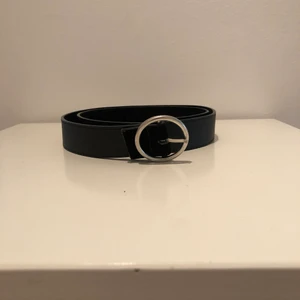 Här är ett vanligt svart skärp med en silvrig cirkel i fram. Den är knappast använd, säljer den för att den inte passade in till min stil. Hoppas nån annan gillar den.