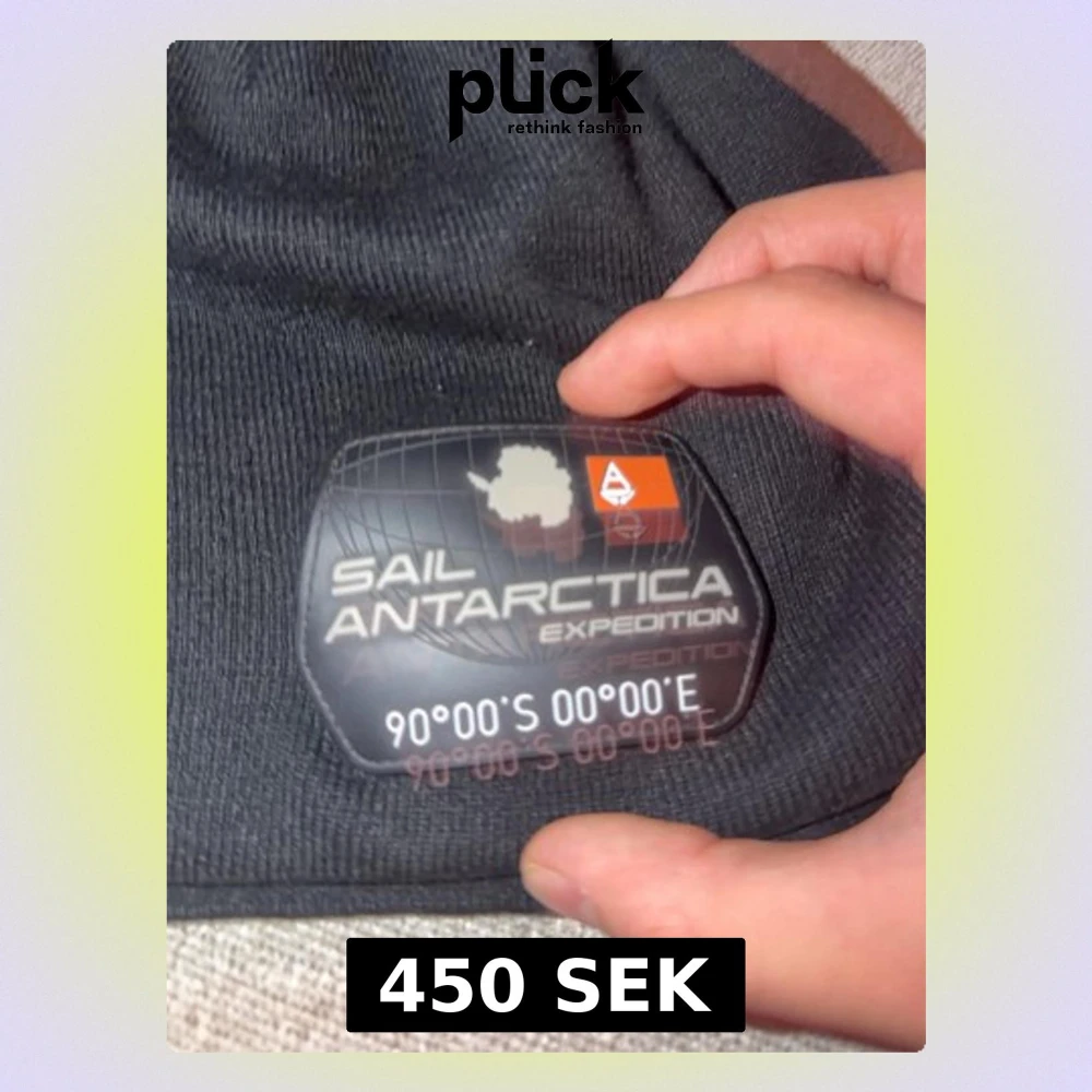 Svart mössa från Sail Antarctica Expedition med ett stort, coolt gummimärke framtill. Mössan är ribbstickad och har en enkel, klassisk form som passar perfekt för kalla dagar. Materialet är mjukt och stretchigt, vilket gör den bekväm att bära.