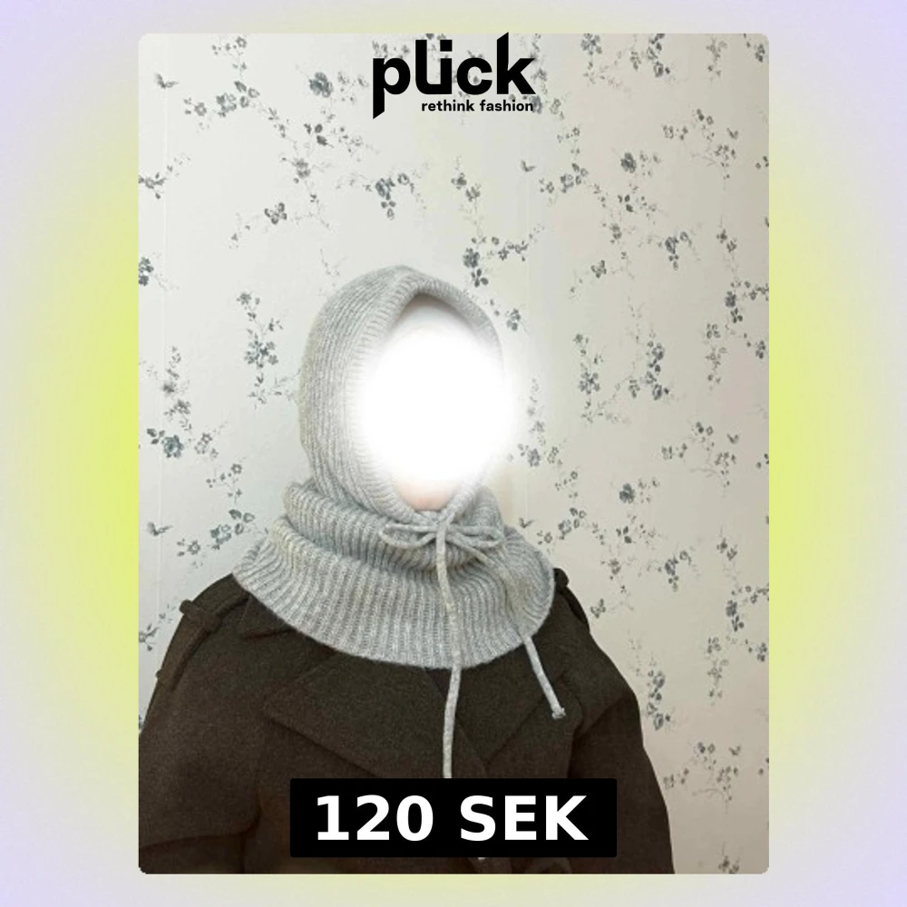 Säljer en ljusgrå stickad huva med snörning framtill. Huvan har ribbad struktur och är gjord i ett mjukt material som sitter skönt runt halsen och huvudet. Perfekt för att hålla värmen och ge en cool vibe till din outfit.