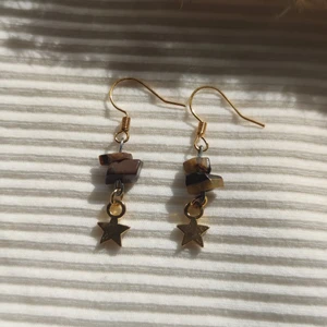 Dessa örhängen har tiger eye crystal-stone. Tiger eye förminskar stress och hjälper på consetrastionen. Pris: 29 kr par skicka pm för intresse