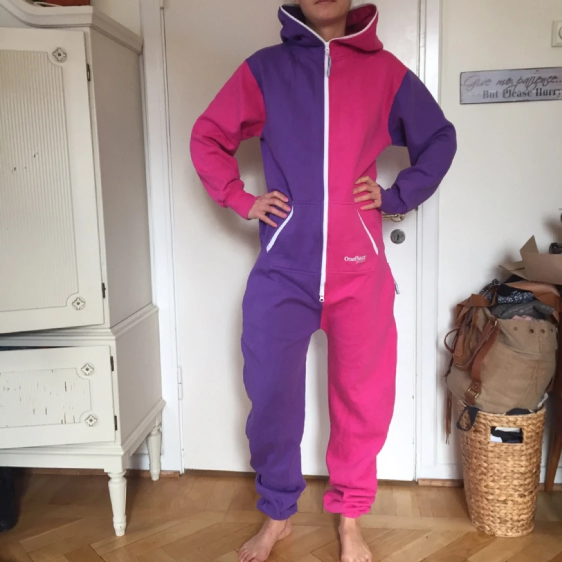 Galet härlig onepiece som tyvärr är för stor för mig som är en XS. Passar en lång S/M (som min roommate på bilden). Ett plagg man aldrig vill kliva ur!!