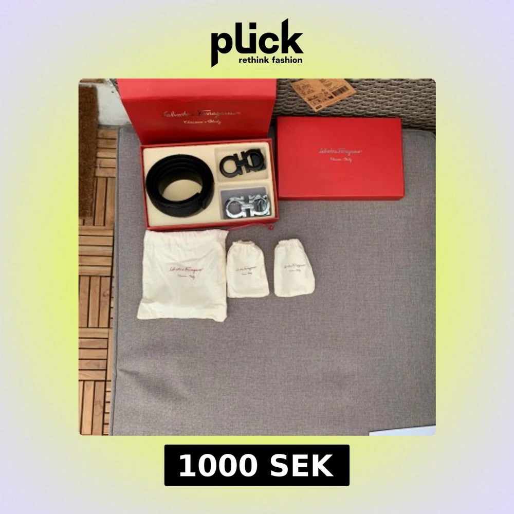 Snyggt svart bälte från Salvatore Ferragamo med präglat mönster och två utbytbara spännen, ett i matt svart och ett i blankt silver. Bältet är tillverkat i exklusivt skinn och levereras i originalförpackning med dustbags. Perfekt för dig som vill ha en. lyxig 💰 accessoar. För flera frågor och funderingar skicka ett sms 💬