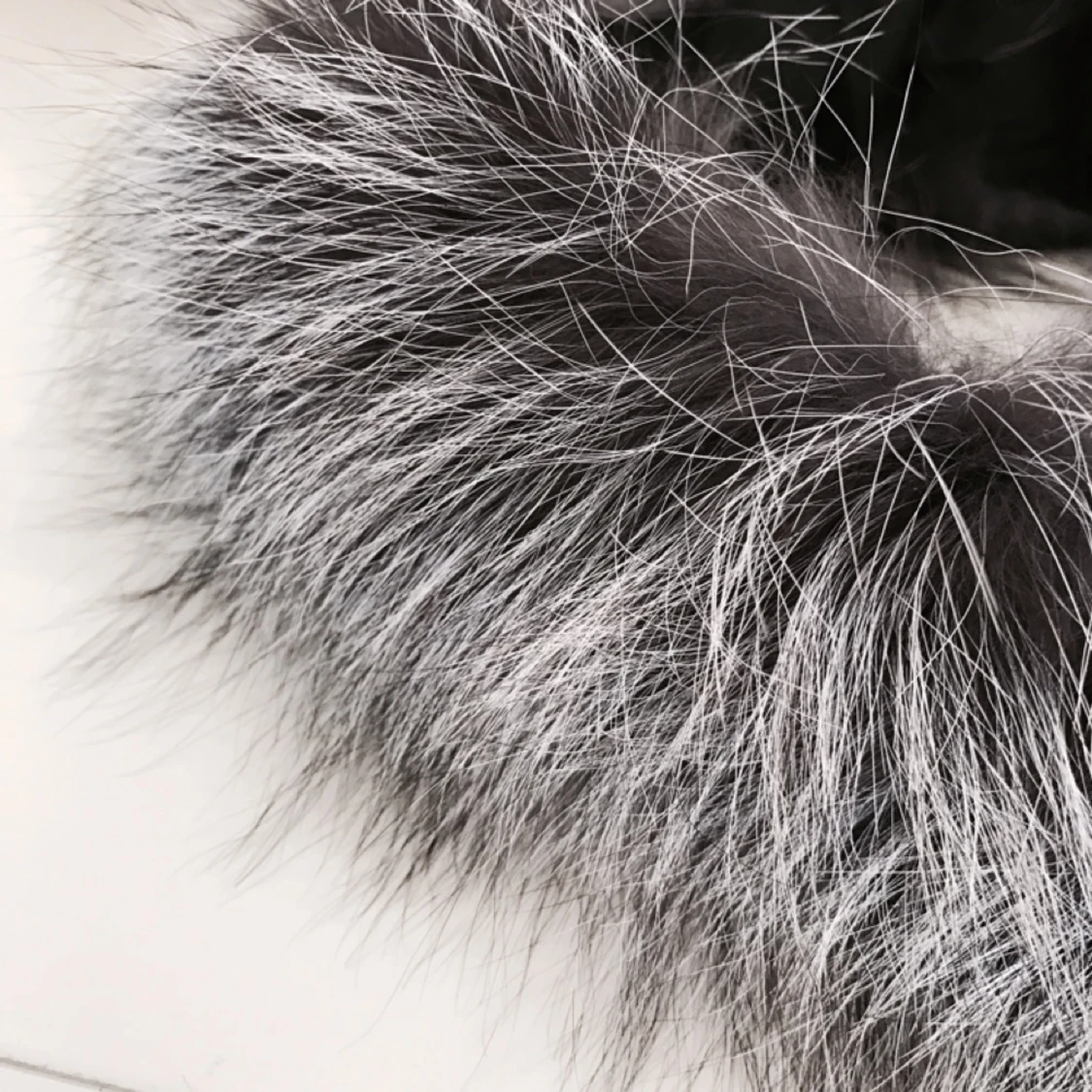 Vit, grå svart äkta pälskrage. Passar till diverse jackor. Helt ny