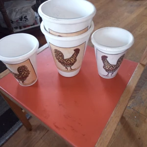 2 stycken påskkrukor vita med mönster 19 cm stora samt 15 cm stora , 2 stycken .hämtas i Skene alt skickas .