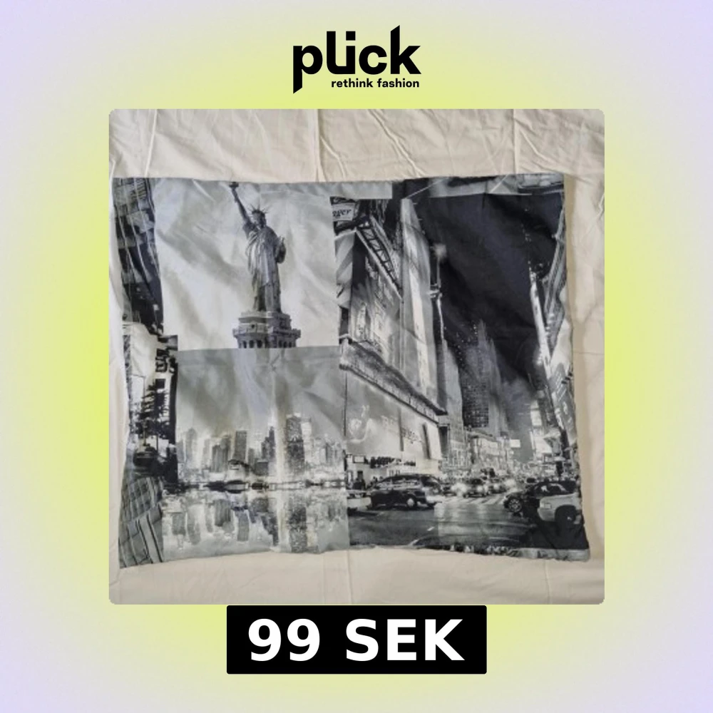 Påslakanset, ca 150×210 cm påslakan och ca 60×50 cm örngott med amerikansk motiv i svartvitt.