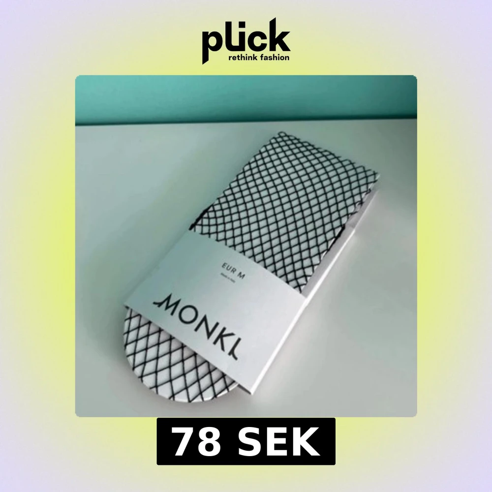 Svarta nätstrumpbyxor från Monki i storlek M. Perfekta att styla med shorts, kjol eller klänning. Helt som nya. Förpackningen är inte öppnad, därför som nya. Resår i midjan och diamantformat mönster.
