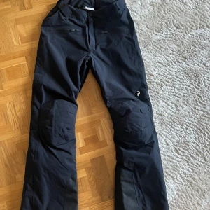 Snygga svarta täckbyxor från Peak Preferomence. De har dragkedjor och knappar framtill samt förstärkta knän för extra hållbarhet. Knappt använda storlek S.