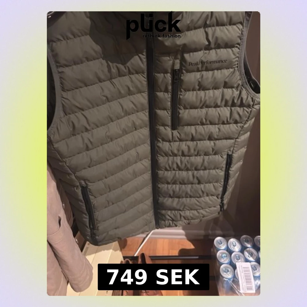 Säljer en olivgrön dunväst från Peak Performance i storlek M. Västen har quiltad design, hel dragkedja framtill och tre fickor med dragkedja. Perfekt för lager-på-lager och outdoor-vibe.