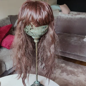 Brun peruk, ej lacefront. Aldrig använd. Luggen är inte klippt så går att klippa den till önskad längd