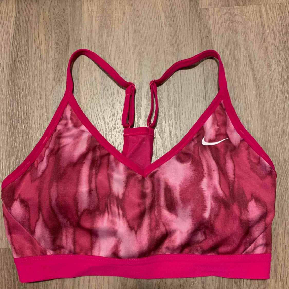 Sport-bh med inlägg från Nike. Rosa i Storlek M. Använd ett fåtal gånger, i gott skick. Aningen liten i storleken. Köparen står för frakt.