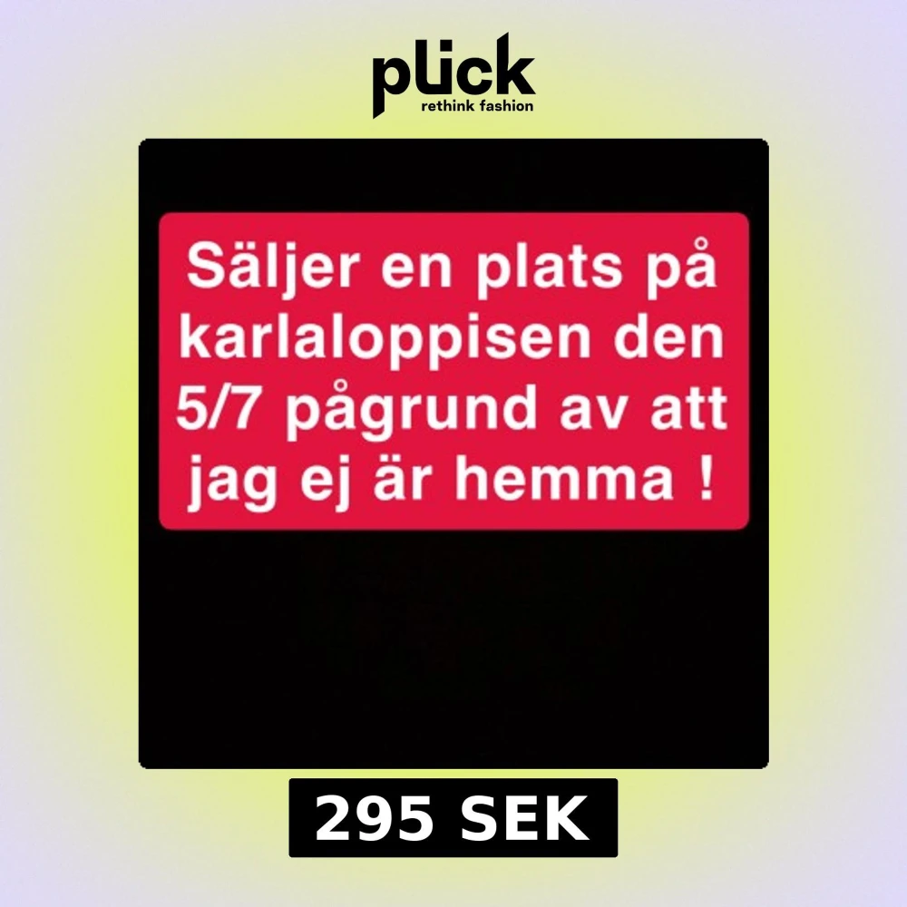 Säljer en plats på karlaloppisen den 5 juli eftersom jag inte är hemma då. Kan även tänka mig att byta mot ett datum i juni istället