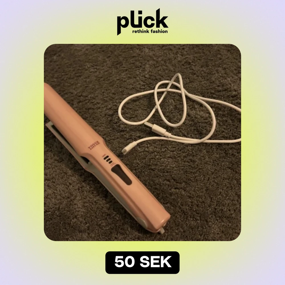 Uppladdningsbar plattång. Går alltså att ha utan sladd. Upp till 185 grader. Liten