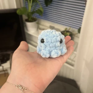 Liten virkad bläckfisk Handvirkad av mig. Gjord på velourgarn. Hund finns i huset. Mönster från All From Jade.
