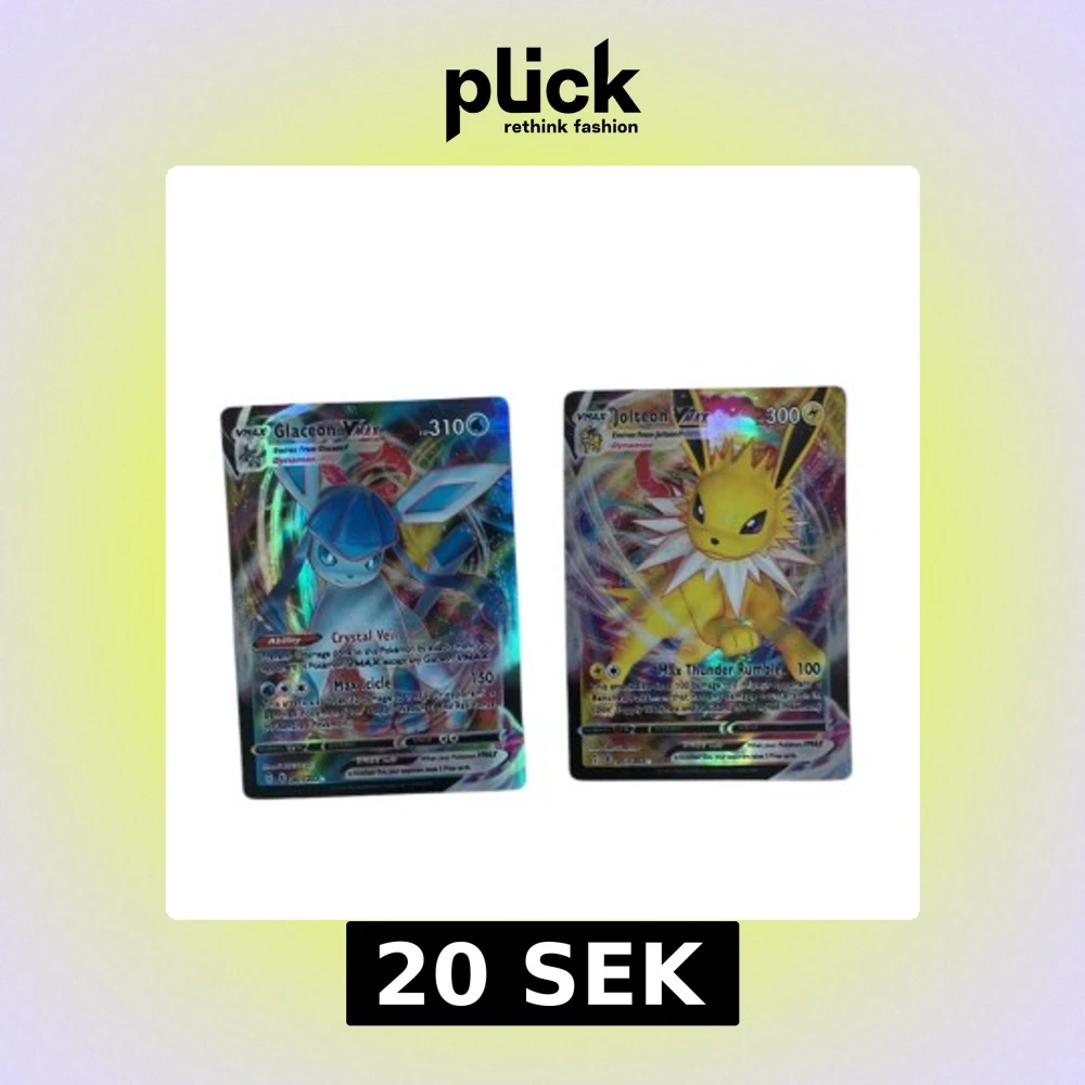 Säljer en samling av Pokémon VMAX-kort med holografisk design. Inkluderar Glaceon, Jolteon, Sylveon, Dracozolt, Urshifu, Cramorant, Eternatus och Lapras. Perfekt för samlare och Pokémon-entusiaster!