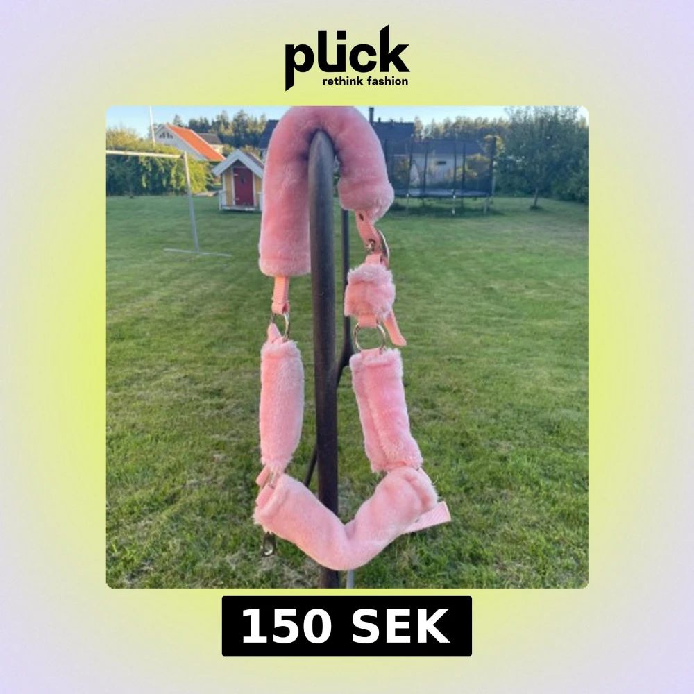 Supergullig grimma till ponny i ljusrosa fluffigt. Grimman har vadderade sektioner och silvriga metalldelar