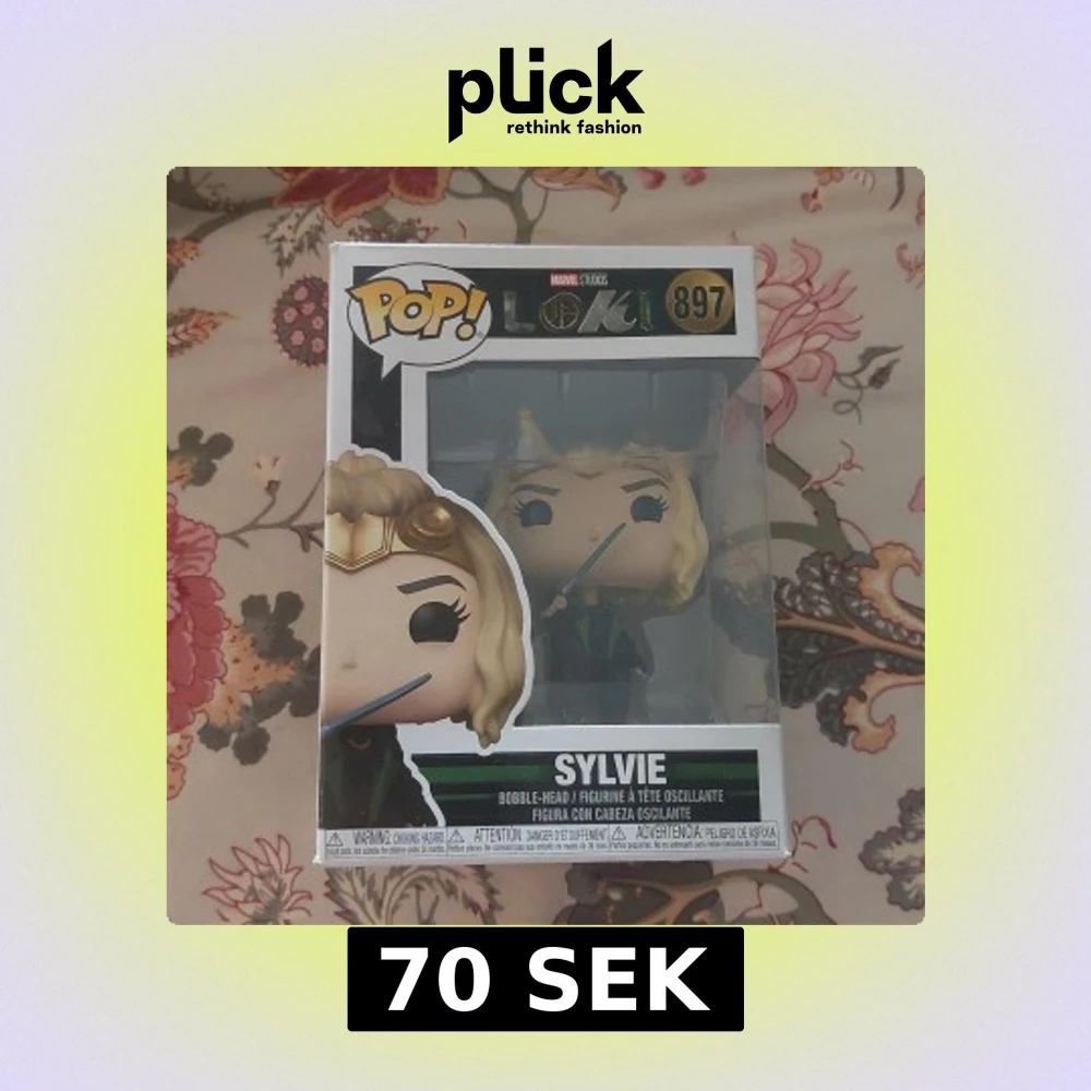Funko Pop! figur av Sylvie från Marvels Loki-serie, nummer 897. Figuren är i originalförpackning och ser ut att vara i nyskick, perfekt för samlare. Inga synliga skador på kartongen.