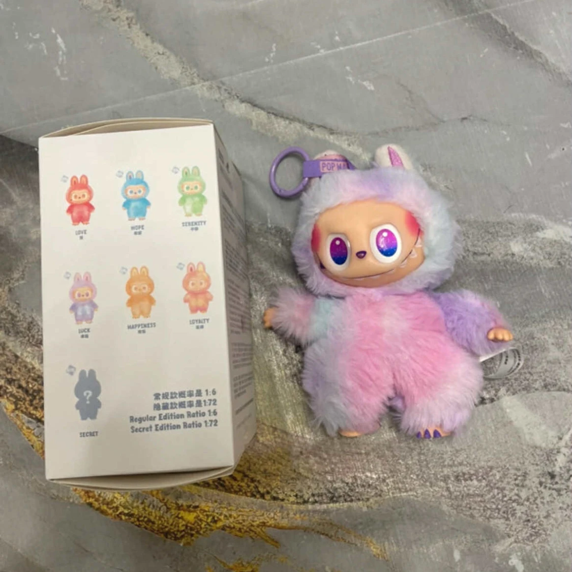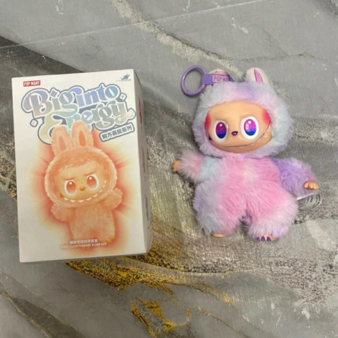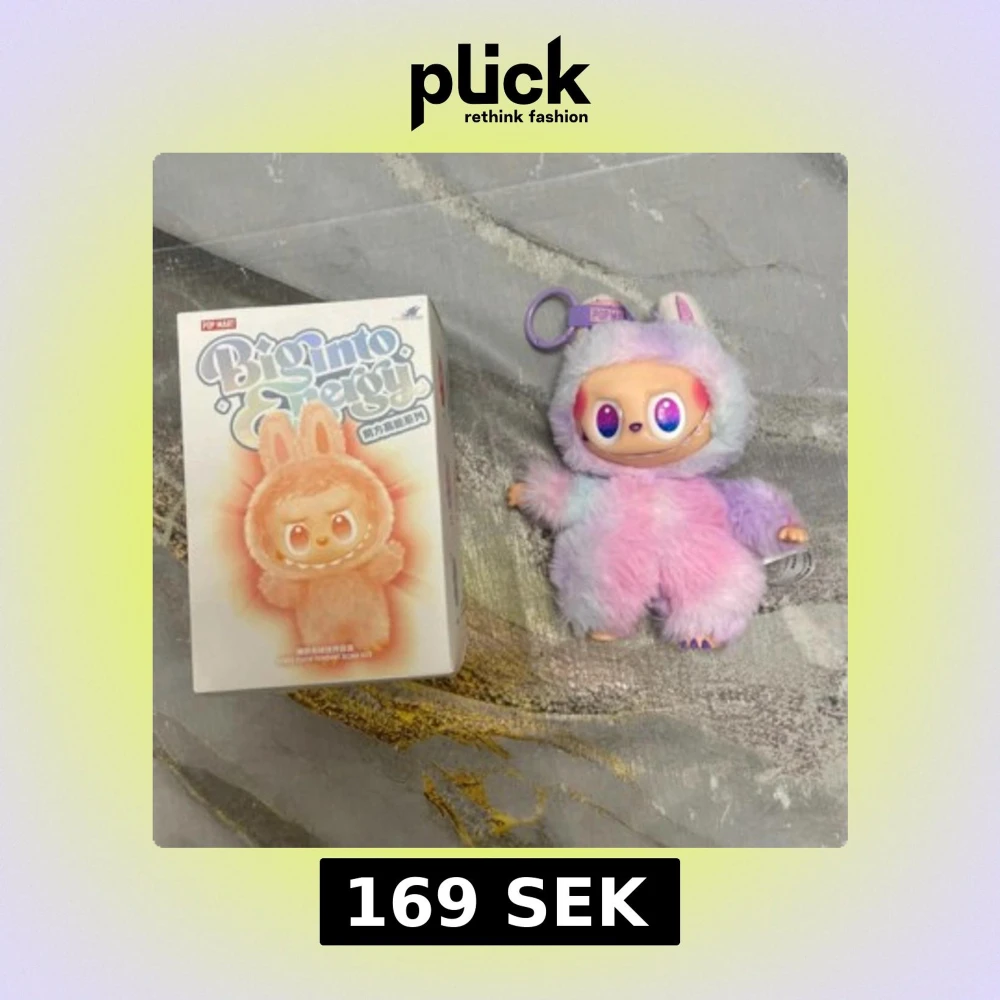 Söt Pop Mart Biginto Energy plush-figur i pastellfärger, komplett med originalförpackning. Perfekt som samlarobjekt eller nyckelring. Produkten ser ut att vara i mycket gott skick utan synligt slitage. Färgglad och unik design som passar alla Pop Mart-fans.