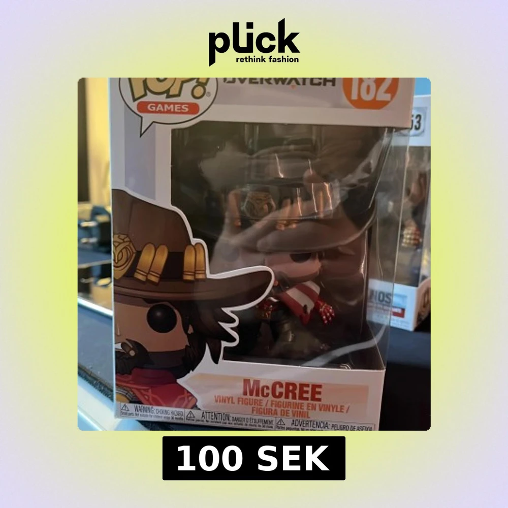En funko pop figur som föreställer karaktären mcree i overwatch. Köptes 2017 och säljer för att jag vill få ut lite grejer från mitt rum. Pris kan diskuteras