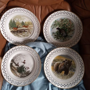 Fina samlar tallrikar 4 stycken av Bing & Gröndahl med Djur i natur i storlek 21 cm stora .med originalteckning av Harald Wiberg .hämtas i Skene alt skickas .