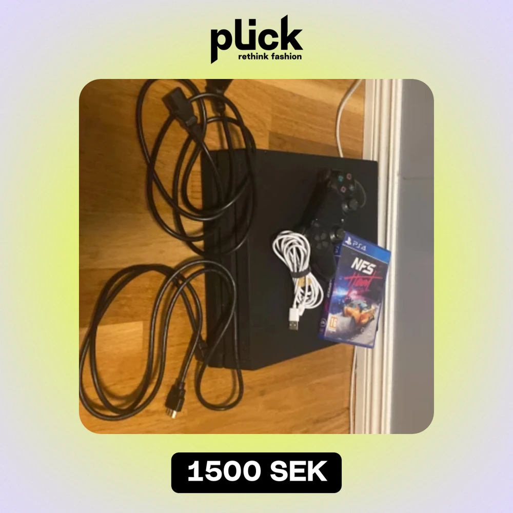 Ps4 kontroll ned for speed och nödvändiga kablar i lite gammalt skick