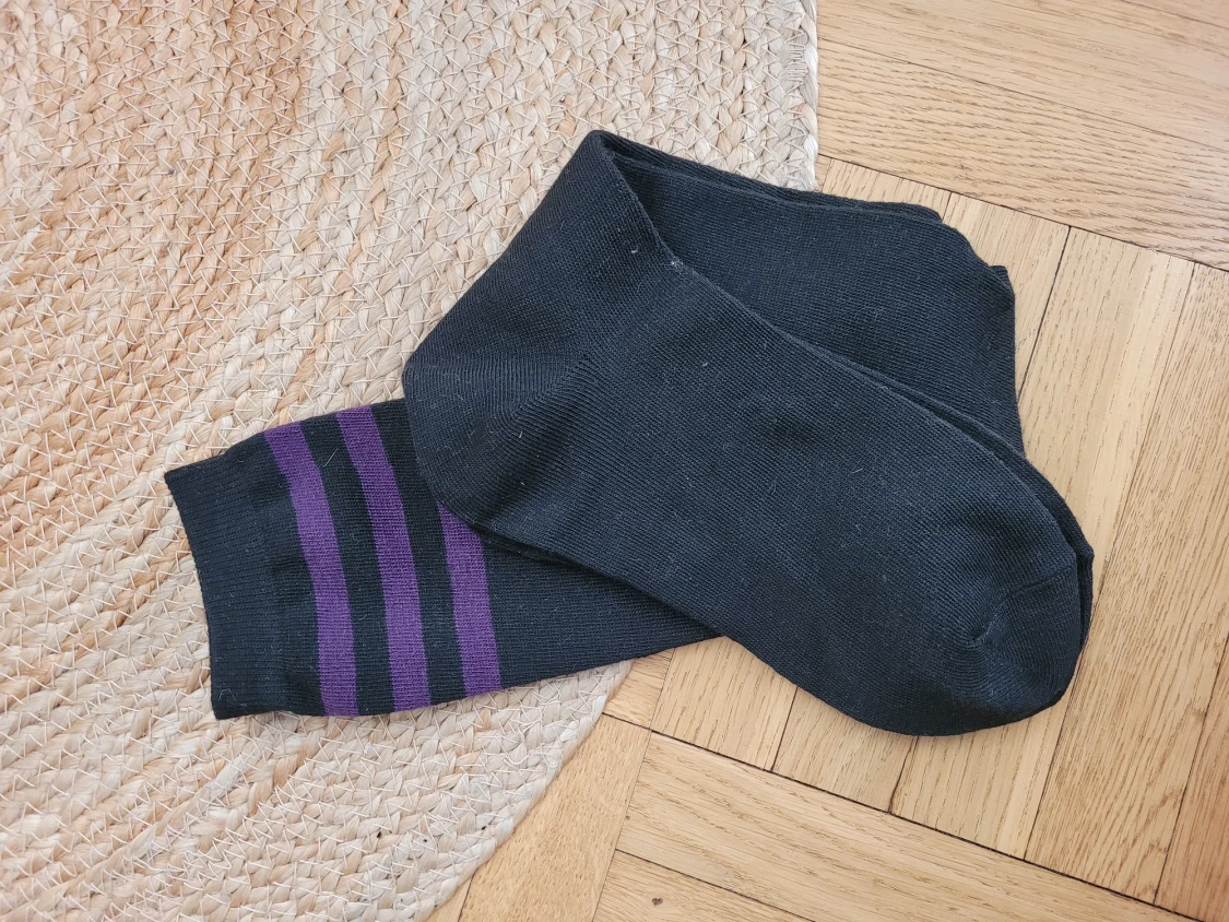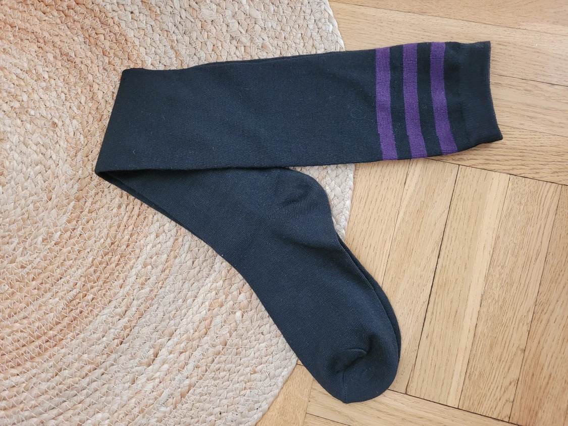 Svarta strumpor over-knee m lila rand upptill. Stl 36-37. Nya aldrig använda.