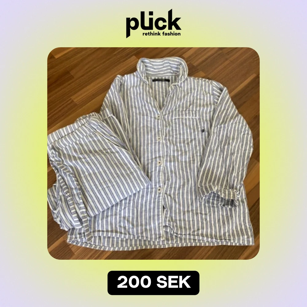 Jättemysigt blå och vita ränder, ifrån missua men köptes från boozt. Nästan aldrig använt inga defekter. Fickor på byxorna.