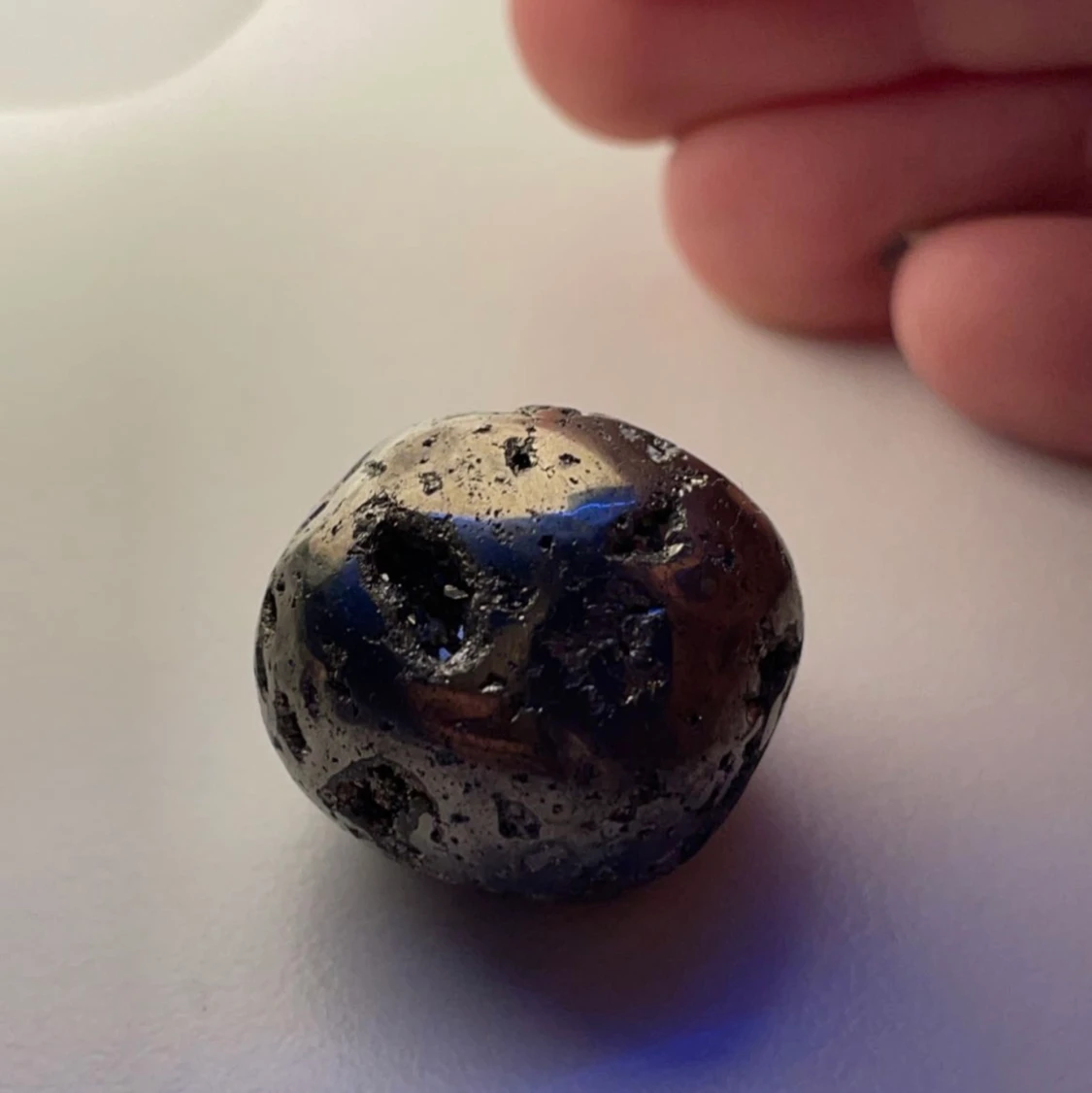 en pyrit ✨ värde: 89kr. 40kr + 12kr frakt = 52kr totalt! OBS i alla kristaller jag säljer följer det med en rökelse pinne, egenskaper, stjärntecken osv🌙